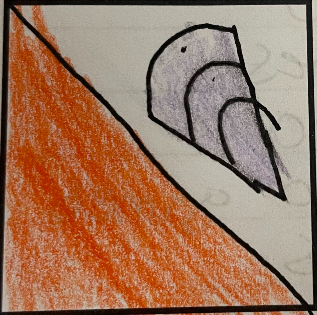 After he had explained the symbolism of all of the parts of his logo, I was very surprised by certain aspects’ meanings. For starters, I was shocked to find out that the orange corner of the logo was meant to represent food, he said, “When you get full after eating, you feel like a warm orange color”. I followed up by asking him what his favorite food was, which he said, “I probably gotta go with pizza, maybe tacos” so although I didn’t get the color right, I was on the right path with my guess about the triangle. I asked him what the white section meant, and he told me it actually had no meaning, it was just a blank area. I asked him about if the sections being parted meant anything, and he said “no, but the line separating them shows the split of sports and video games in my life, cause you gotta even it out”. I followed this up with what sports and games do you play and he said, “I play football, basketball, and lacrosse and for games I mainly play Minecraft, Rocket League, and Brawlhalla”. I had asked about the triangle, not knowing what to expect, and he hit me with “It represents music because its like a volume bar” which was just about the last thing I would’ve guessed. I asked him what kind of music he listens too and he told me he mainly listens to rap and r and b. The final thing I asked was what does the purple mean, and he said its just his favorite color which is the only thing I was able to correctly guess.