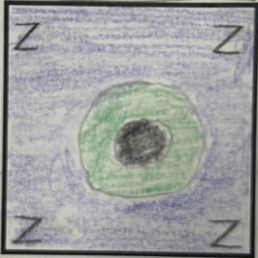 When interviewing Nsaindon26, the first question that I asked him was what the meaning of the Z’s were. He had a simple straight to the point answer, “I like to sleep.” Upon further questioning, I said, does it really just mean sleep? “I’m catching Z’s,” he replied. I then asked him about the purple background, and to my surprise he said,”I’m a big Taco Bell guy.” As it turns out, the purple represented Taco Bell. I asked him what was so special about Taco Bell and he said it was his,”Go to place.” and that he’s been going there for years. After that I asked him about the green circle and he told me that the green circle was actually a vinyl, and that the black dot was in the middle of it. When I asked him what made him choose the vinyl he said, “I like to go to concerts” as a follow up question I asked him what his favorite concert he’s been to was and he said, “Pantera.”