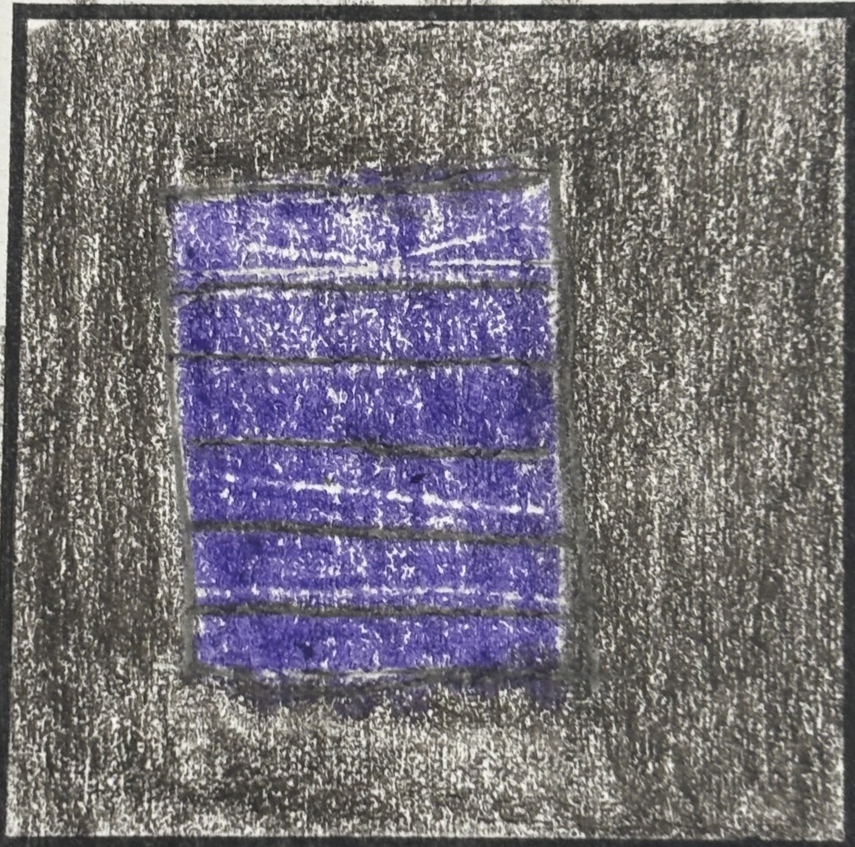 At first glance, I was confused, if I’m to be honest. I thought maybe it was a portal from Minecraft, or something similar. And then I started looking closer and noticed the 6 black lines across. At this, I was even more confused, but then began to wonder if it was meant to symbolize an instrument, like a piano, or a stringed instrument, and i wasn’t necessarily wrong with this assumption, as it pertained to music, but rather than it symbolizing an instrument itself, it was meant to represent the Spotify logo. When asking why purple instead of green if it was supposed to be the Spotify logo, Echadburn stated, “I was looking for green, but there was none, so I used purple”. I think the use of the purple instead of the green, may have been out of replacement for the green, yes, but I also think that the purple on the black background pops in a way where it’s more attention-grabbing, and to see the smaller details, like the horizontal lines, you do have to look closer, and actually pay attention.