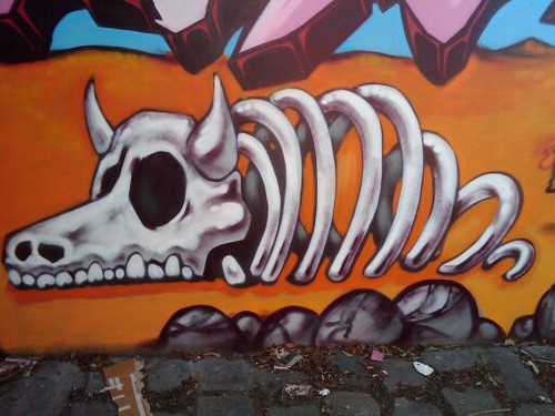 “graffiti of cow bones in st kilda” by ajfisher.td is licensed under CC BY-NC-SA 2.0.